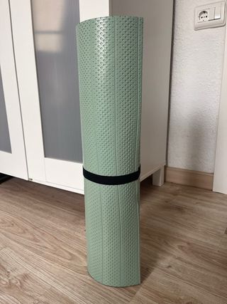 Esterilla enrollable de color verde, ideal para practicar pilates o yoga.