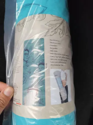 Esterilla de yoga con diseño inspirado en Frida Kahlo. Perfecta para tus sesiones de pilates, entrenamiento o meditación. - Incluye bolsa de transporte. - Diseño en color turquesa con motivos florales.