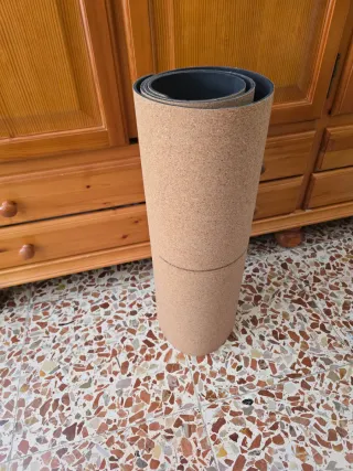 Esterilla deportiva de corcho natural, marca PROZIS. Parte superior de corcho y parte inferior de caucho natural. Esterilla antideslizante y resistente al sudor, de gran calidad (ofrece una buena amortiguación). Muy útil para entrenamientos en casa, yoga, meditación y pilates. Medidas: 1.83 m de largo, 61 cm de ancho y 5 mm de profundidad. Nueva, nunca usada.