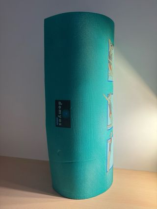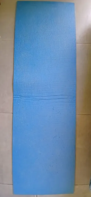 Esterilla de yoga de color azul/verde, ideal para tus sesiones de ejercicio. - Textura antideslizante. - Plegable para facilitar su transporte y almacenamiento. - Presenta algunos arañazos leves.