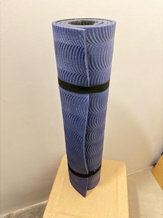 Esterilla enrollable de color azul, ideal para practicar yoga o ejercicios varios en el suelo. Es cómoda y práctca. - Material de espuma. - Textura antideslizante.