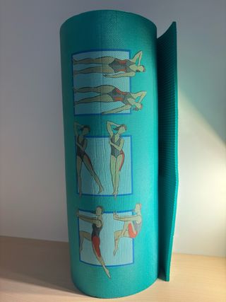 Esterilla de yoga o pilates de la marca Decathlon, modelo Nyamba. Es enrollable y fácil de transportar. - Color azul. - Textura antideslizante.