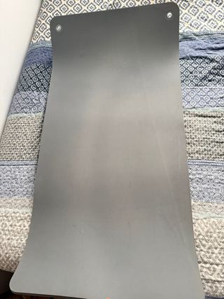 Vendo esterilla de yoga pequeña y acolchada, ideal para llevar a cualquier parte. Es de color gris y tiene un tacto suave. - Perfecta para practicar yoga o pilates en casa o al aire libre. - Fácil de transportar gracias a su tamaño compacto. - Material acolchado para mayor comodidad.