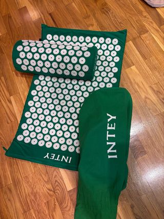 Set de esterilla de acupresión y almohada de la marca Intey. - Color verde. - Incluye funda. - Diseño con múltiples púas para masaje.