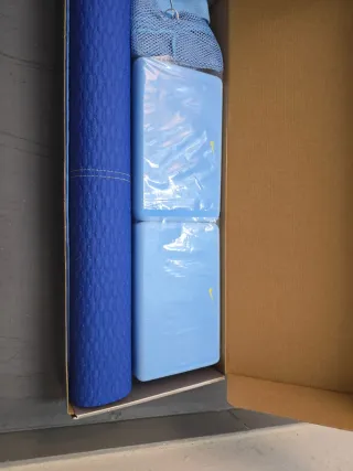 7 Esterilla de ejercicio de color azul, con una textura antideslizante para mayor seguridad. Medidas: 1,66x60cm Todas juntas 30€ Sueltas: 7€ - Diseño con relieve. - Material resistente.