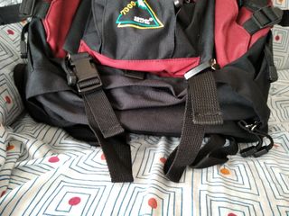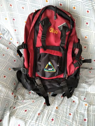 Mochila de montaña Setmil, modelo Ohio. nueva, sin estrenar. 100℅ poliéster. Con correas para esterilla y sacó de dormir. Varios huecos adicionales con cremallera. refuerzo para espalda con varillas. Doble fondo separado por cremallera, y posibilidad de apertura por la parte inferior.