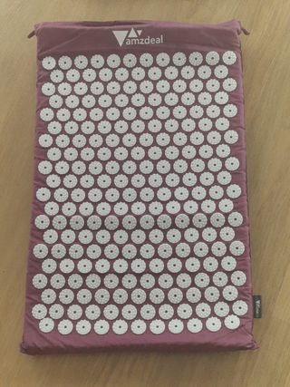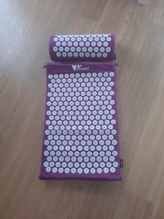 Esterilla de acupuntura, especial para aliviar dolores de espalda, estrés y tensión. Va con el cojín también. Prácticamente nueva, se ha usado muy pocas veces. Se le puede quitar la funda para lavar sin problema y va con una bolsa para poder meterla dentro y transportarla cómodamente.