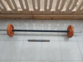 Barra de musculación para Bodypump, ideal para entrenamientos. - Incluye discos de peso. Barra bodypump (2kgs) 2 discos GOMA ( 5KGS/ und) * REGALO barra mancuerna.