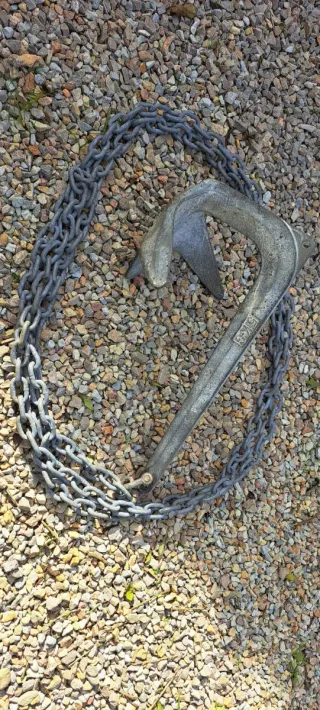 Ancla de 5kl con 4 m de cadena de 6mm galbanizada más otra cadena de acero inox de 6mm y 5,5m de largo por 200€