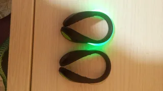 Par reflectantes con luz LED verde para mayor visibilidad.Para colocar en los tacones de los tenis.Van a batería - Ideales para actividades nocturnas. - Diseño clip-on para sujetar fácilmente. - Color: Negro con luz verde.