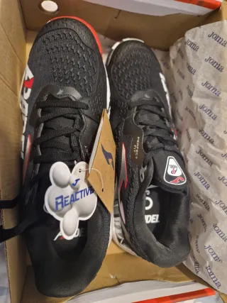 Zapatillas Joma modelo Smash para pádel en color negro. TALLA 42 - Diseño deportivo. - Cierre con cordones. - Detalle de logo en la lengüeta y el lateral. - Suela con buen agarre y durabilidad con caucho Durability - Excelente amortiguacíon Reactive Ball