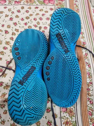 Zapatillas K-SWISS ULTRASHOT 2 HB en color azul y negro.Sin apenas uso.TALLA 42 -26'5 CM - Diseño deportivo. - Suela de goma.Ligeras con Excelente Agarre, estabilidad comodidad, sin costuras, lengüeta especial qué evita entrada de arena.Peso 370grs - Cierre de cordones sistema evita qué se aflojen y/o desaten.