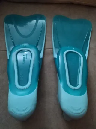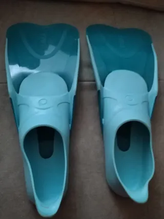 Aletas de natación Subeo de Decathlon en color azul claro. - Talla 36-37 - Diseño ergonómico para mayor comodidad. - Pala ancha para propulsión.