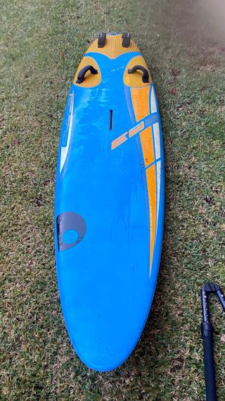Tabla de windsurf de la marca Northsails. Diseño en color azul con detalles naranjas y blancos. - Asas de agarre. - Aletas en la parte trasera. - Compartimento central. - 200Regalo la funda