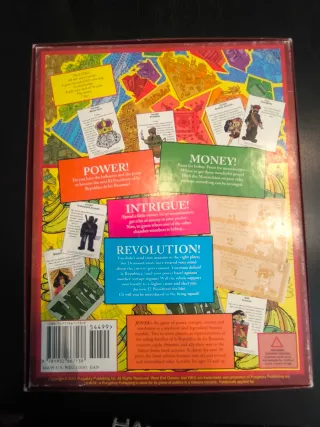 Juego de mesa Junta con temática de El Juego de Poder, Intriga, Dinero y Revolución. Inglés, nunca jugado. - Ilustraciones de estilo caricaturesco. - Personajes variados con diferentes atuendos y armas.