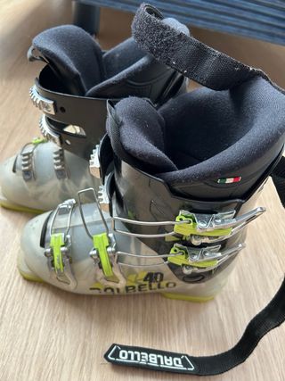 Botas de esquí Dalbello para niño, talla 40. Perfectas para iniciarse en el deporte. - Cierre con hebillas. - Diseño en color gris y negro. - Correa de velcro superior.