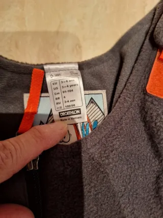 Mono de nieve para niños, ideal para protegerse del frío y la humedad. Talla 3-4 años. - Color gris oscuro y negro. - Tirantes ajustables. - Cremallera frontal. - Detalle de color naranja en tirantes y ajuste lateral.