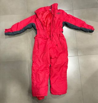 Mono de esquí para niño en color rojo y gris. Ideal para disfrutar de la nieve. - Cremallera frontal. - Cinturón ajustable. - Puños elásticos. Tiene algunas marcas azules en la parte posterior por transferencia de color en la lavadora.