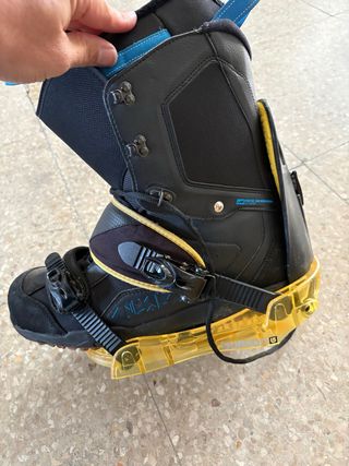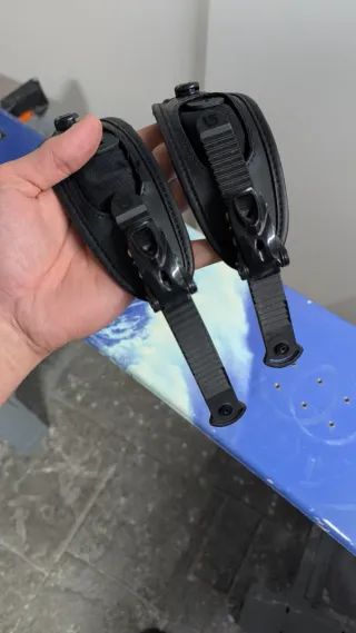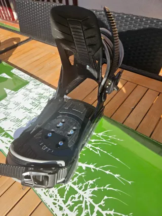 Fijacion de snowboard K2 en color negro.valen 200 nuevo Es solo 1 fijacion Si tienes otra, usa esta para quitar y poner al desplazarte - Diseño moderno y robusto. - Correas ajustables para mayor comodidad. - Base sólida para un buen agarre.