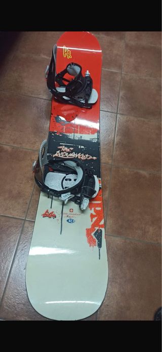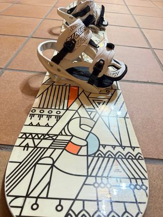Tabla de snowboard con un diseño llamativo y atrevido Tabla Snowboard más tres fijaciones una de ellas sin estrenar