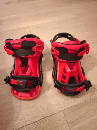 Fijaciones de snowboard de la marca Wed'ze con un diseño llamativo. - Correas ajustables para un buen agarre. - Base y highback con detalles gráficos. - Utilizadas 3 veces. - Seminuevo.