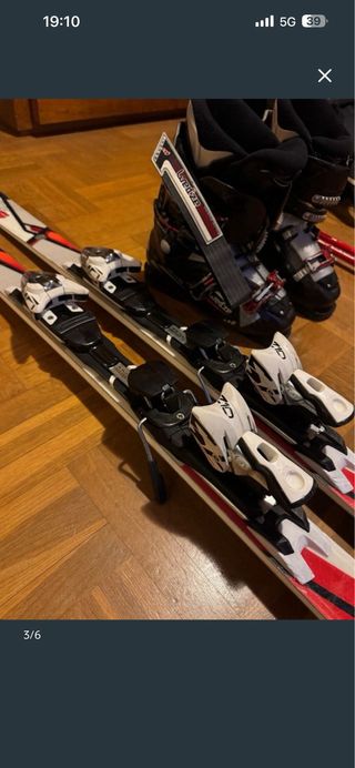 Conjunto completo de esquí Wedze en buen estado. - Esquís con fijaciones. - Botas de esquí. (talla 38) - Bastones de esquí. - Bolsa de transporte.