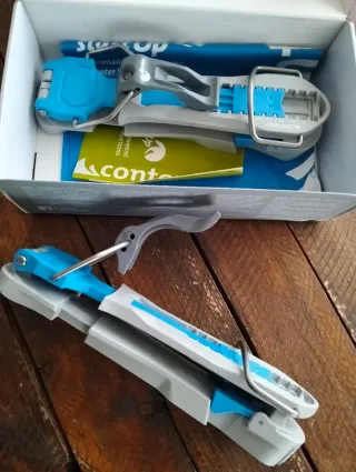 Se venden fijaciones de esquí de travesía de la marca Contour. Son de color azul y gris. Para pues entre 36 y 42. - Fijaciones de esquí de travesía. - Color azul y gris.