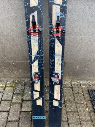 Pongo a la venta este espectacular equipo de Freetouring/Skimo técnico. Una combinación de alta gama diseñada para quienes quieren subir ligeros pero no quieren sacrificar nada de flotabilidad y control en el descenso. -Tablas: Majesty Supernova (Edición Constelaciones). Longitud: 170 cm. Patín: 103 mm de patín. -Fijaciones: Kreuzspitze SCTT. -Pieles de foca: Colltex (Azules) cortadas a medida. El pegamento está en buen estado y deslizan de maravilla -Cuchillas
