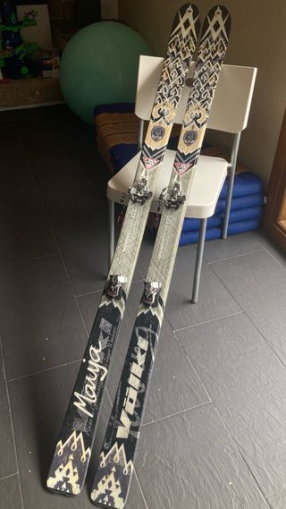 Esquís de travesía Völkl Mauja de 177 Muy versátil y solvente en diferentes condiciones de nieve, sobresaliente en nieve dura, muy estable, fullcamber tradicional, equipo muy ligero en su clase. Suelas y cantos en muy buen estado. Fijaciones Dynafit S. Turn radical montadas para bota de 33O unas Scarpa laser ahora usadas con las F1 algo mas cortas de carcasa 322. Se incluyen pieles de foca cortadas a medida Kolha en buen estado. Se entregarian con cantos afilados y suelas enceradas. - Modelo: Mauja - Longitud: 177 cm