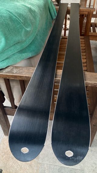 Skis all mountain. Skimo/ freeride / pista. Black Crows, referente en freeride y esquí de montaña/ Camox: modelo icónico divertido y versátil. 97mm waist · radio 19m · 1.725g/esquí. Construcción en madera de poplar con refuerzos en fibra. Flotador en polvo, estable en nieve dura y ágil en terreno variado. Para nivel medio-alto que quiera disfrutar dentro y fuera de pista. Dynafit Rotation 14: la fijación más completa en su rango. DIN 4-14,seguridad de fijación alpina con bajo peso de travesía. Montadas para botas 310mm (ajus ±22.5mm) Topsheet con marcas de uso. Bases y fijaciones perfectas. Pieles kohla de regalo Comprados en 2024.