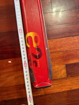 Esquís de nieve marca HEAD, modelo F9. Material de carbono vintage - Color rojo y negro con detalles amarillos. - Fijaciones de esquí incluidas. Medida para 195cm