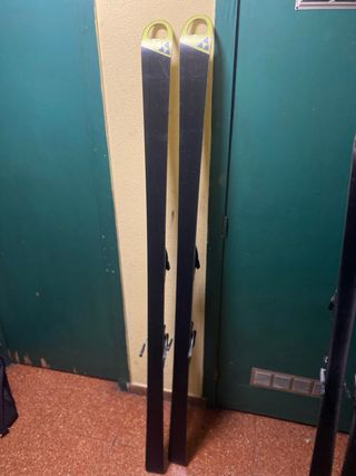 Conjunto de esquís Salomon en color amarillo con fijaciones. - Esquís Salomon modelo Verse 5.9. - Fijaciones Salomon incluidas. - Diseño con detalles en negro y blanco. - Regalo los palos