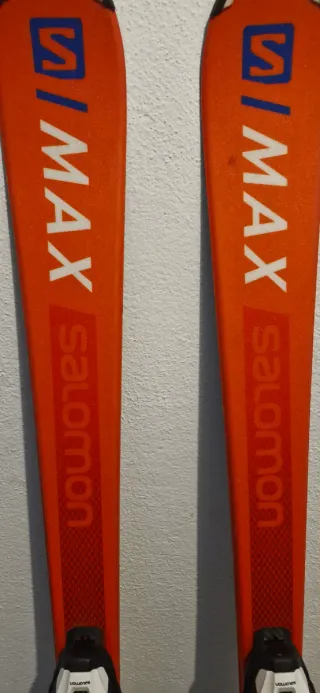 Esquís Salomon S/Max para junior, con una longitud de 140 cm. Diseñados para jóvenes esquiadores. Regalo botas ski - Color naranja vibrante. - Fijaciones Salomon JR incluidas. - Modelo S/Max. - Longitud 140 cm.