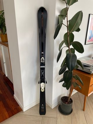 Esquís Dynastar en buen estado, listos para la nieve. - Modelo: Dynastar 161cm. - Incluye dos esquís y fijaciones. - Color rojo y detalles dorados. - Perfectos para esquiadores intermedios.