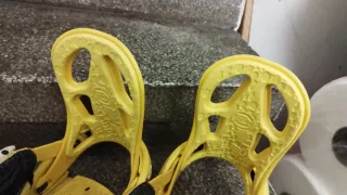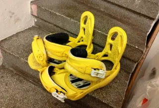 Fijaciones para snowboard de la marca Flux en color amarillo. Usadas pero en buen estado Funcionan perfectamente Detalles estéticos. En la última foto se ve que falta una tapita que cubre tornillos, NO afecta para nada el funcionamiento. - Correas ajustables. - Hebillas de cierre. - Base con diseño. - Parte acolchada interior.