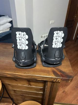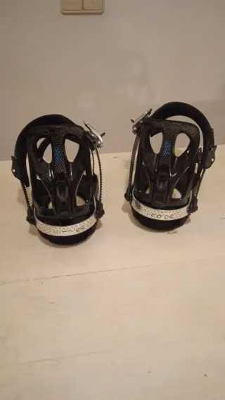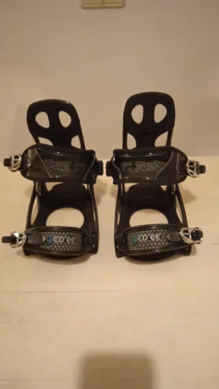 Par de fijaciones para snowboard. - Diseño ergonómico. - Correas ajustables. - Base sólida. Con tornilleria de anclaje a la tabla