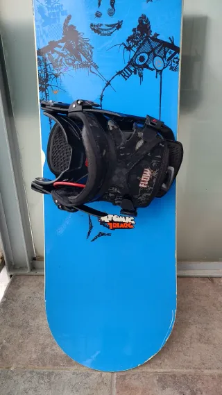 Tabla de snowboard Atomic con fijaciones Flow. (Precio no negociable) (No envíos) - Talla: 159cm. - Fijaciones Flow negras. - Necesita hacerle cantos y encerar.