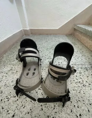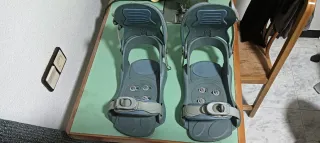 Par de fijaciones de snowboard en color gris y azul. Marca: crazycreek Talla 41-44 - Diseño ergonómico. - Correas ajustables. - Base sólida.