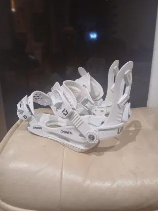 Fijaciones de snowboard Union Cadet en color blanco. Diseñadas para ofrecer comodidad y rendimiento en la montaña. - Marca: Union - Modelo: Cadet - Color: Blanco