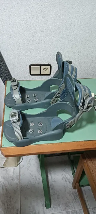 Par de fijaciones para snowboard, le faltan los anclajes a la tabla. Regalo tabla de snow que hay que repararla, tiene una apertura de 3cm en la parte delantera no se aprecia a simple vista pero en la nieve le entra un poco de nieve