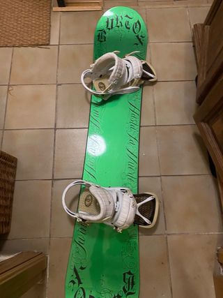 Pack completo de snowboard con tabla Burton y botas Head. - Tabla de snowboard Burton. 148 cm - fijaciones burton - funda burton - Botas de snowboard Head. talla 40 La tabla está usada y con desgaste visible, pero funcional. Hay que realizar el mantenimiento. Perfecto para principiantes