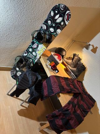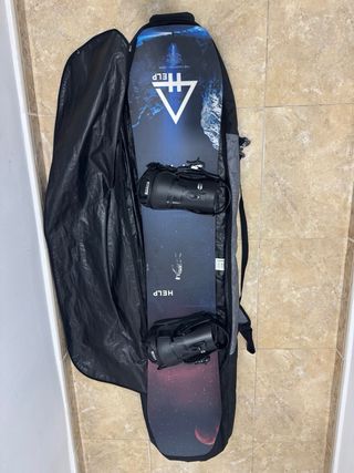 Se vende equipo completo de snowboard. - Tabla de snowboard. - Fijaciones para botas. - Par de guantes de protección. - Funda para transporte.