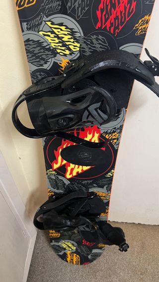 Tabla de snowboard de la marca Santa Cruz con fijaciones incluidas - 150 cm - usado solo una vez (prácticamente nuevo sin ningún desperfecto)