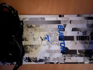 Conjunto completo para snowboard Burton. - Tabla Burton con diseño de araña azul. - Fijaciones Burton. - Botas de snowboard. Sin estrenar. Regalo la funda y dos cascos