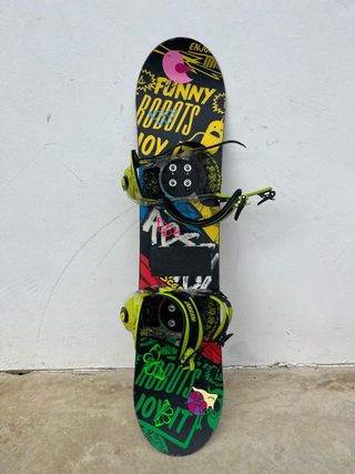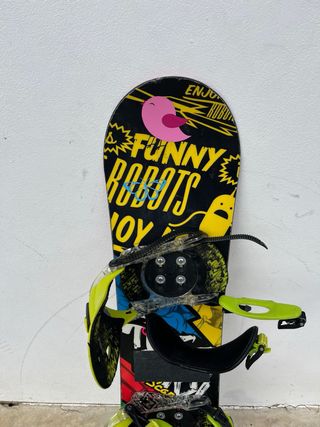 Tabla de snowboard infantil con un diseño divertido y colorido de Funny Robots. de marca rossignol - Gráficos llamativos con personajes. - Fijaciones incluidas nitro medida 120 podria entregar botas decathlon talla 33