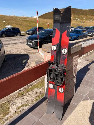 Tiene las fijaciones cambiadas por unas Dynafit. Me hicieron una chapuza en ambas, ya que las atornillaron directamente a la tabla sin meter pines. La plateada ha aguantado y sigue aguantando metiendole mucha caña en ladeos, la otra se ha salido y puedes ver las fotos para ver en detalle. Tengo tambien una fijación spark suelta (nueva). Así que creo que metiendole un poco de producto para tapar los agujeros y poniendole otra spark la dejas perfecta ya que se mantienen los pines originales de la Spark. Suela y cantos los tiene para hacer, sin mucha historia un par de pikotazos pero dentro de lo normal vamos Tengo tambien fijaciones para descenso, cuchillas (dos con una temporada y otra suelta con tres temporadas) y tengo dos pares de focas Kohla. Unas con tres temporadas y otras con dos temporadas y en muy buenas condidiones.