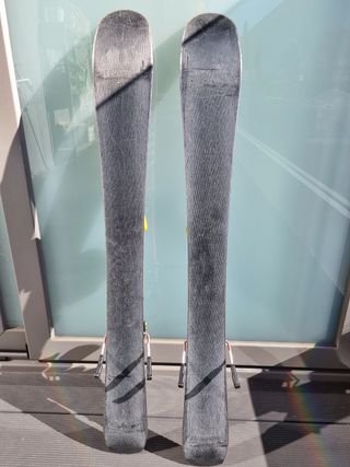 Pareja de esquis Rossignol Toon Wide, talla 184, con fijaciones Salomon. Los cantos están perfectos, sin óxido. La suela tiene algún raspón superficial. Muy cuidados.