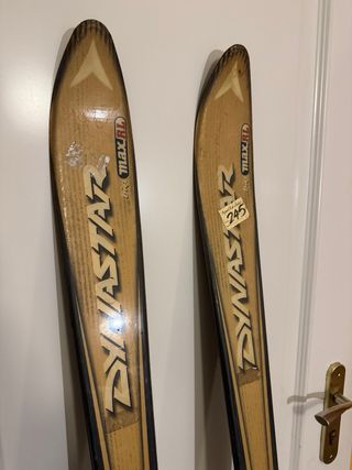 Esquís Dynastar Big Max RL en buen estado. Fijaciones Look XR Sport Quickset Talla 1.70 Aricell Core ski - Marca: Dynastar - Modelo: Big Max RL - Diseño en tonos madera y negro. tiene un pequeño dentado en la parte inferior.