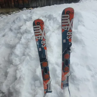 Esquís cortos de la marca SRX, modelo 400. Diseñados para disfrutar de la nieve. - Color principal naranja y azul. - Fijaciones incluidas.