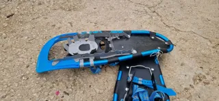 Raquetas de nieve para caminar sobre superficies nevadas. Son de color azul y negro. - Sistema de fijación con correas. - Diseño ergonómico.